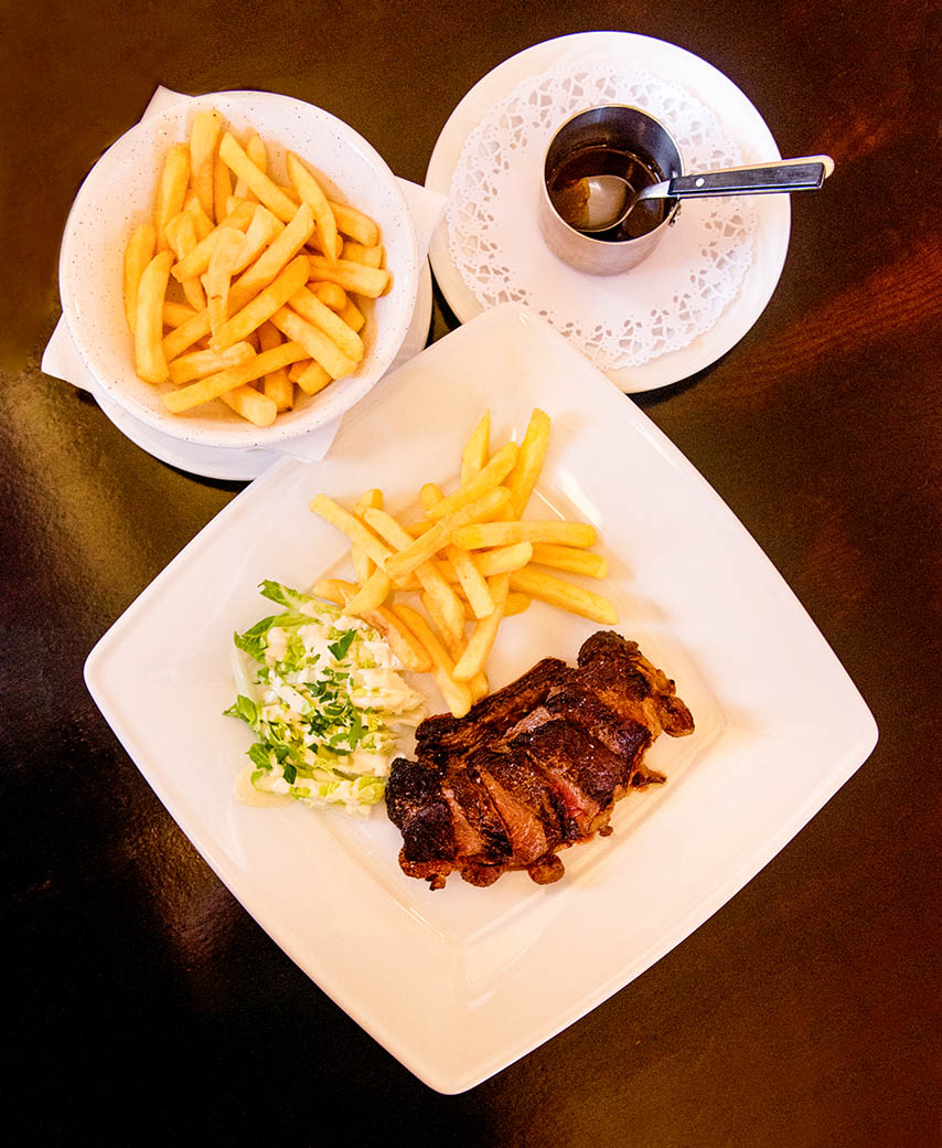- Leg de biefstuk of ribstuk op het bot en braad 4 minuten aan elke kant op middelhoog vuur.