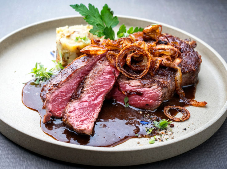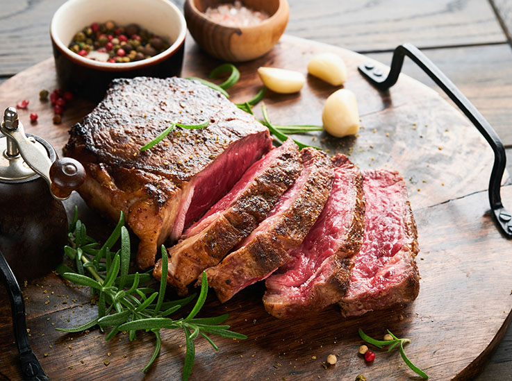 Laat de vetstof lichtjes bruinen voordat u het vlees in de pan doet. Als u uw vlees graag sappig hebt, breng dan de plaat op haar maximumtemperatuur. Het vlees zal zo beter dichtschroeien en daardoor meer jus vasthouden. Voor een saignant gebakken steak braadt u het vlees ongeveer 2 à 3 minuten aan elke kant. Afhankelijk van uw voorkeur kan u het vlees langer laten braden, waardoor het minder saignant wordt. Vergeet niet iets meer zout en peper toe te voegen dan bij andere vleesbereidingen.